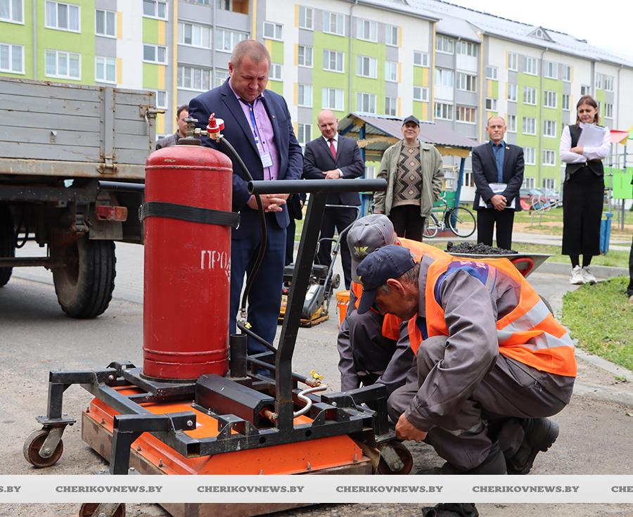 О порядке проведения подготовительных работ в соответствии с требованиями безопасности, рассказала мастер по благоустройству Юлия Сухинина. Ремонт части дорожного покрытия асфальтобетоном проведен дорожными рабочими в присутствии участников семинара.