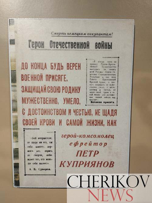 В Черикове работает передвижная экспозиция Музея истории Великой Отечественной войны «Дорога памяти»