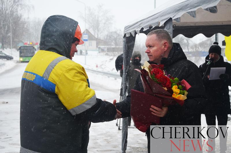 Торжественный старт движению дали заместитель премьер-министра Республики Беларусь Анатолий Сивак, председатель Могилевского облисполкома Анатолий Исаченко, заместитель министра транспорта и коммуникаций Сергей Дубина, председатель Чериковского райисполкома Олег Малышевский, генеральный директор РУП «Минскавтодор-Центр» Василий Гнедко, генеральный директор РУП «Могилевавтодор» Анатолий Лопатин, генеральный директор ОАО «Мостострой» Сергей Вашкевич, генеральный директор ОАО «Дорожно-строительный трест № 3» Валерий Полякевич.