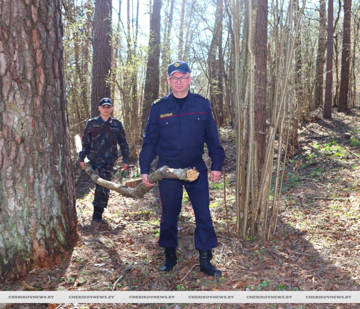 Республиканская добровольная акция «Лес! Дабро! Парадак!» объединила сотрудников Чериковского районного отдела внутренних дел и воспитанников военно-патриотического клуба «Ратник» из средней школы №2 г.Черикова. Место для трудового десанта выбрали знаковое — экологическую тропу в лесном массиве зоны отдыха Горки, расположенную в Езерском опытно- производственном лесничестве.