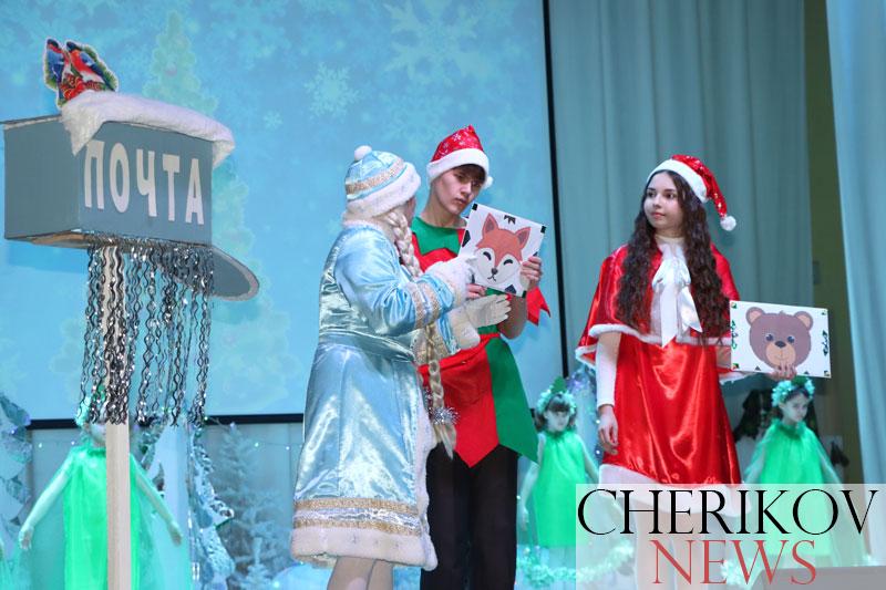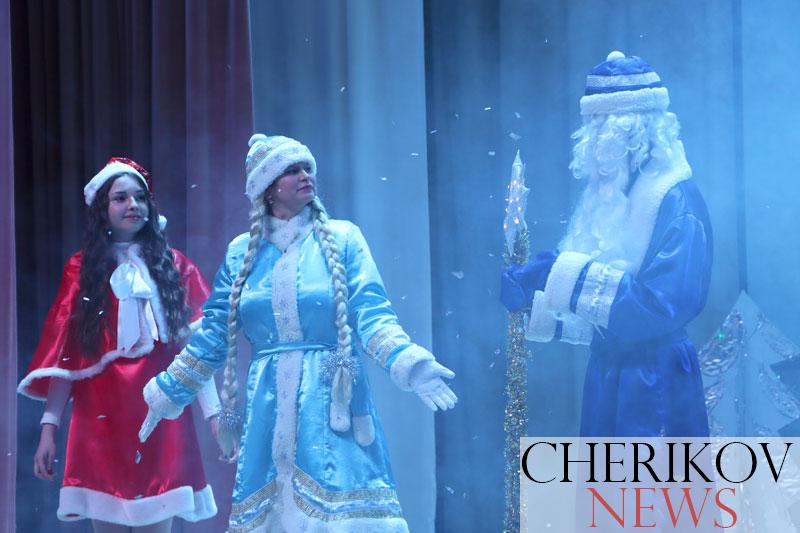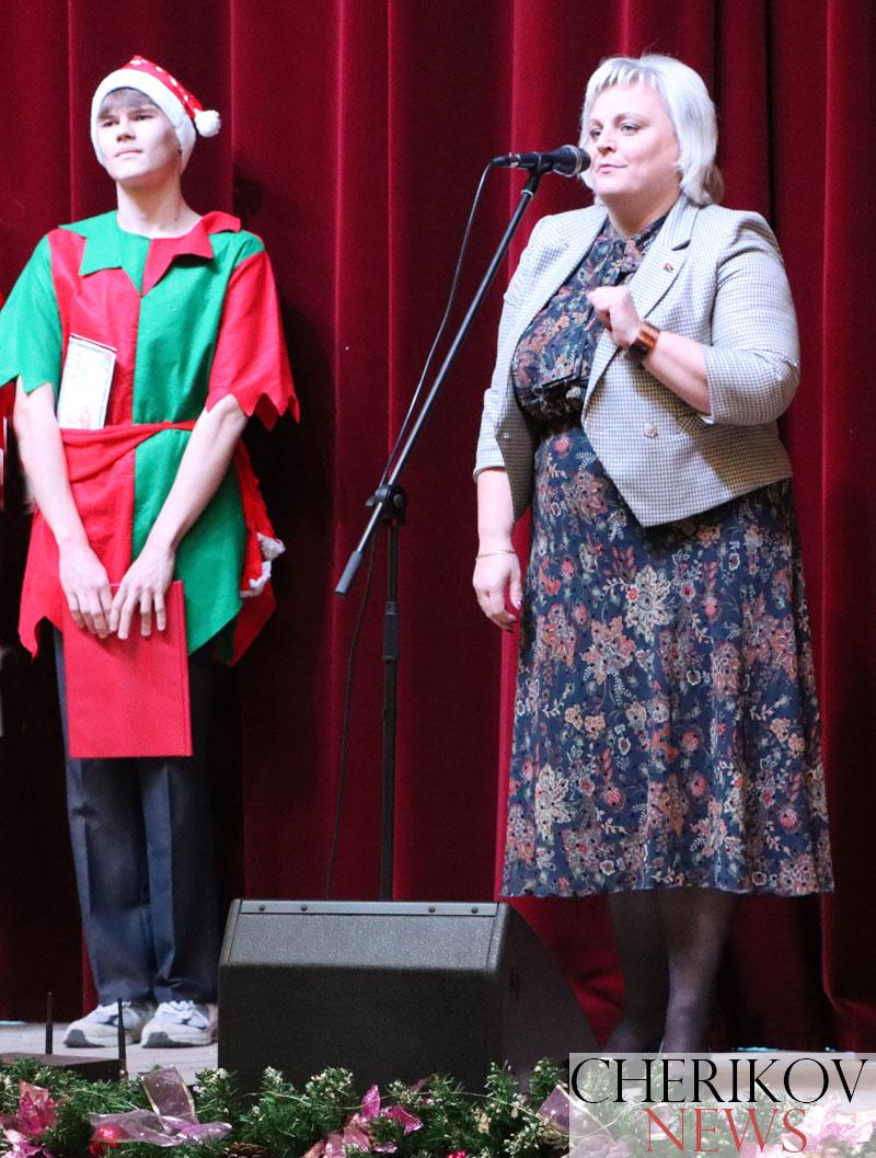 Перед началом представления от лица исполнительной власти района, от себя лично с наступающими Новым годом и Рождеством мальчишек и девчонок, а также всех собравшихся в зрительном зале поздравила заместитель председателя Чериковского райисполкома Елена Колосова.