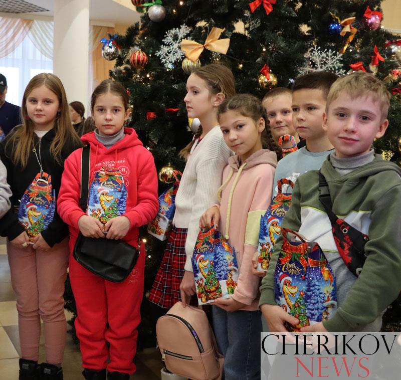 В рамках акции «Наши дети» 26 декабря для ребят Чериковского района прошел благотворительный новогодний утренник. Дети-сироты, дети, оставшиеся без попечения родителей, дети-инвалиды, а также отличники учебы и активисты района не только смогли посмотреть удивительную, интересную сказку, которую для них подготовили учащиеся и педагоги Центра творчества детей и молодежи г. Черикова, но и получили сладкие новогодние подарки.