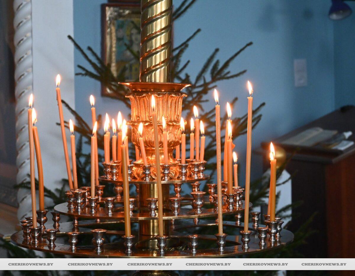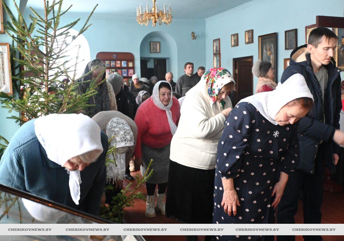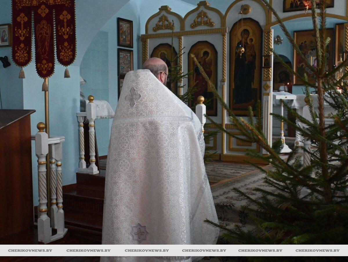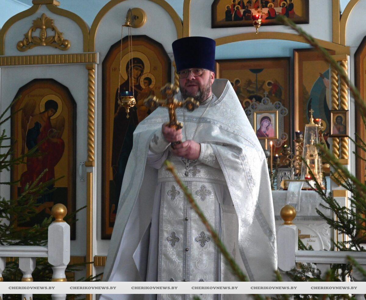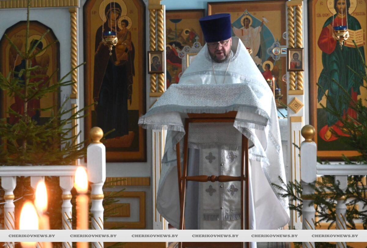 В храме Рождества Пресвятой Богородицы города Черикова в день празднования Крещения Господня, отмечаемого православными верующими 19 января, прошли праздничные богослужения. Сегодня здесь состоялась литургия, как и во всех православных храмах, с торжественным молебном, а после прихожане смогли набрать освященную крещенскую воду.