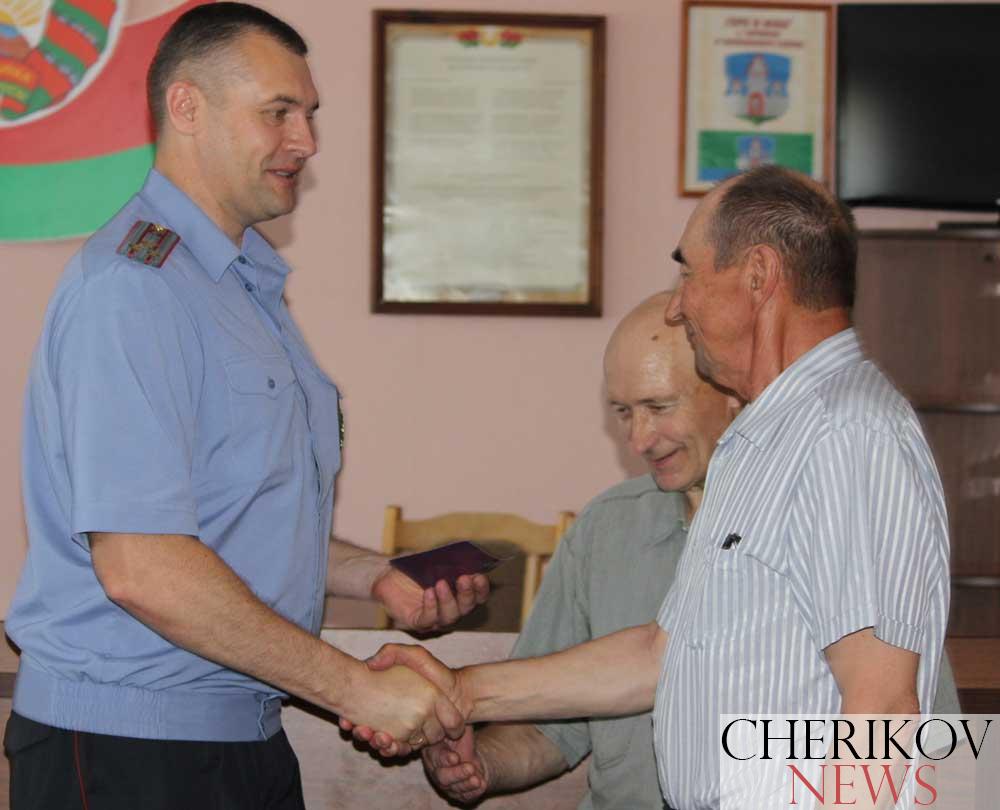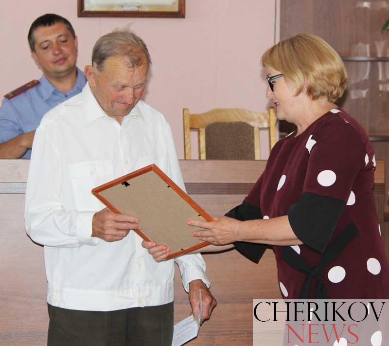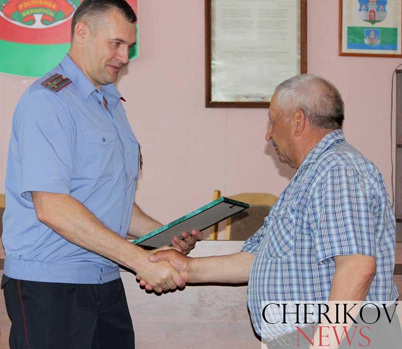 По традиции в этот день актовый зал Чериковского РОВД стал на некоторое время авансценой торжественного мероприятия. Свои коррективы в его проведение внесла эпидемиологическая ситуация и аномальная жара, поэтому в зале было не так многолюдно, как в прошлые годы. Однако вместе с тем слова поздравления и благодарности звучали в адрес всех ветеранов Чериковского РОВД от начальника райотдела Руслана Белякова, а также от председателя ветеранской организации РОВД Александра Рыжанкова. После чего по традиции ветеранам были вручены заслуженные награды. Так, Почетной грамотой республиканской организации ветеранов был награжден полковник милиции в отставке Александр Рыжанков, Почетные грамоты областного Совета ветеранов были вручены майору милиции в отставке Владимиру Каркозову и капитану милиции в отставке Александру Величко. Майору милиции в запасе Петру Хадорченко и старшему прапорщику милиции в отставке Василию Цулыгину преподнесли Благодарности от областного Совета ветеранов. Нагрудным памятным знаком «100 лет Могилевской милиции» награжден подполковник милиции в отставке Олег Осипенко, а нагрудного знака «За заслуги» удостоен подполковник милиции в отставке Владимир Янченко. За пропаганду деятельности органов внутренних дел и воспитание личного состава, а также в связи 30-летием со Дня образования общественной организации ветеранов органов внутренних дел и внутренних войск МВД Республики Беларусь были поощрены денежной премией: Анатолий Соляников, Виктор Шнэйдер, Василий Дворяченко.