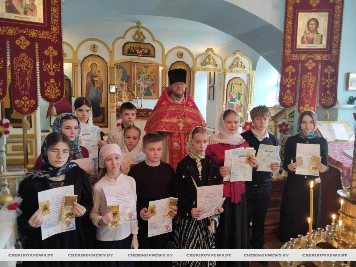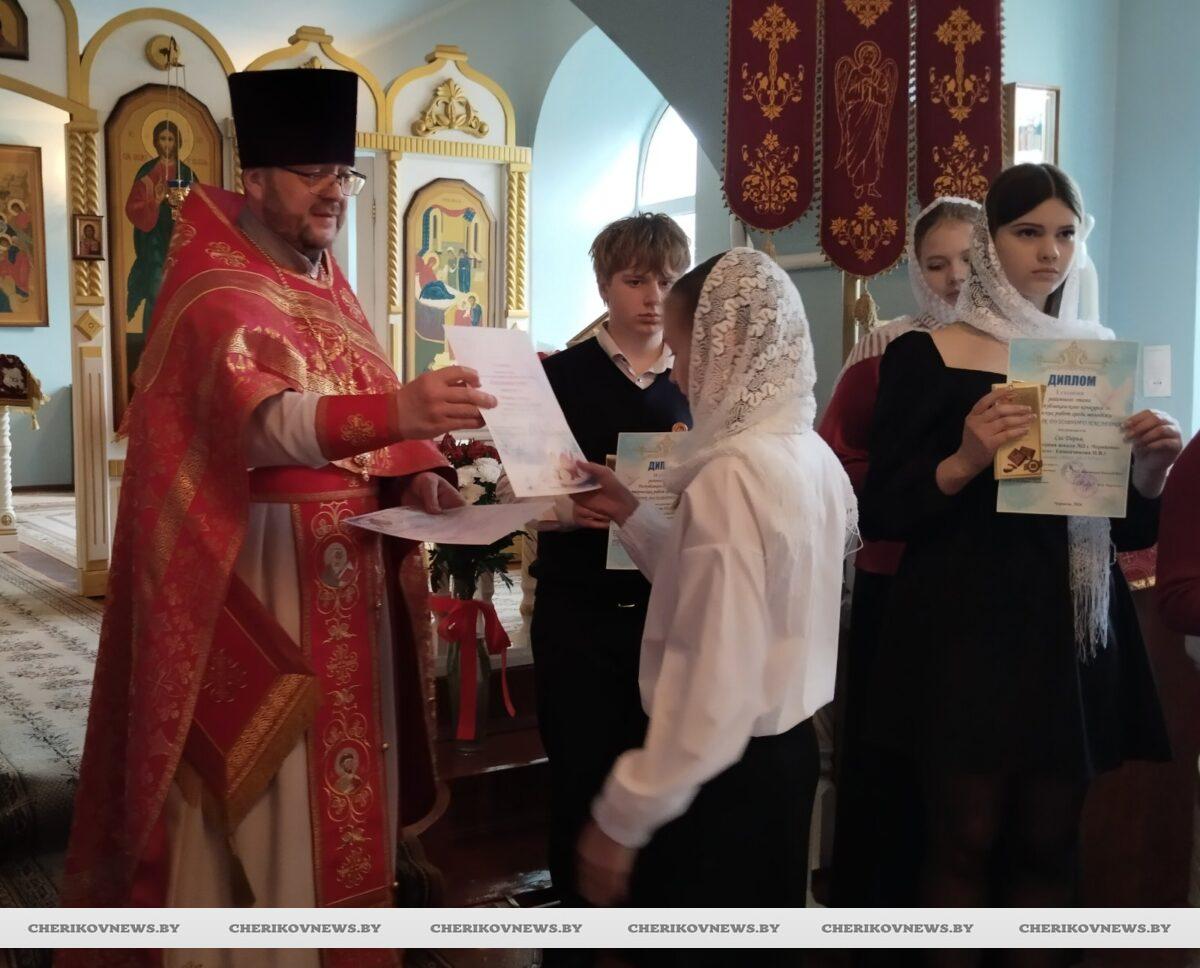 — На церемонию награждения в Храм Рождества Пресвятой Богородицы города Черикова были приглашены учащиеся с педагогами, которые подготовили победителей конкурса, — сообщила Оксана Давлыева. — Благочинный Чериковского округа, настоятель храма, протоиерей Николай Жук поблагодарил ребят за участие, отметил их мастерство и пожелал Божьей помощи в дальнейших творческих делах, вручив дипломы и сладкие подарки.