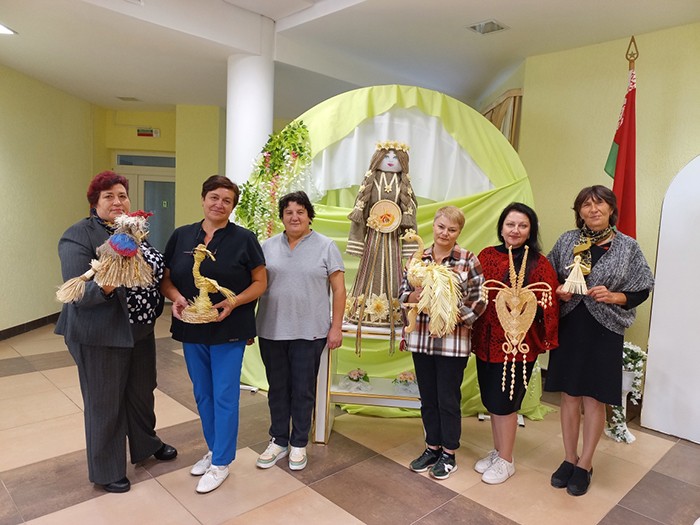 Татьяна Стелькина, педагог дополнительного образования ГУО «Центр творчества детей и молодежи» г. Черикова, рассказала о своей любви к природному материалу — соломке. Ее приоритетным направлением деятельности является бисероплетение, но она также успешно овладела секретами соломоплетения. На выставке были представлены ее оригинальные работы.
