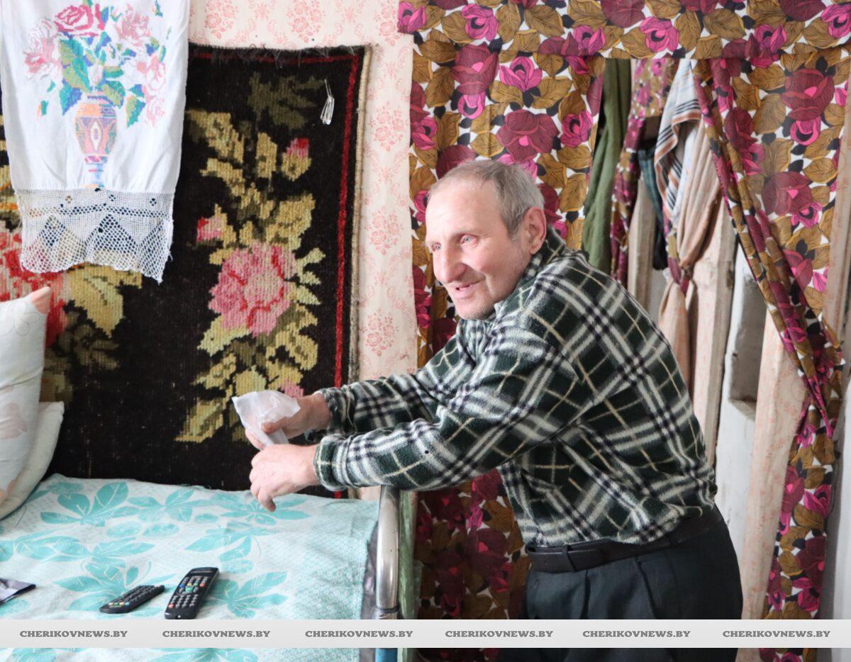 Едем в поселок Победа. Хозяина забираем по пути в агрогородке Лобановка. По пути Митрофан Сергеевич рассказывает, что сейчас в поселке живет один, летом веселее, дачники приезжают. Поселок встречает красивой зимой, одинокими домами, в которых уже давно не горит свет. По прочищенной дорожке, на которой для удобства сделаны ступеньки, идем к дому на пригорке. В доме тепло и уютно, на окнах герань, а на теплой печке спит кот. Так и не скажешь, что в доме живет одинокий мужчина, и хочется добавить — в самом рассвете сил, но нашему герою без малого 75. Проверили исправность печки, проводку, поговорили о жизни. В завершении визита профилактический десант установил новый АПИ в доме пенсионера.